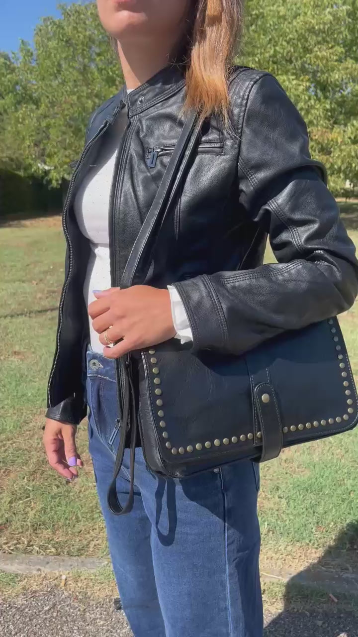 La borsa Paris unisce stile e funzionalità con le sue borchie eleganti che aggiungono un tocco di carattere. La tracolla regolabile garantisce comfort e praticità, rendendola perfetta per ogni occasione, dal giorno alla sera. Scegli Paris per un accessorio distintivo che valorizza il tuo look con audacia e charme.