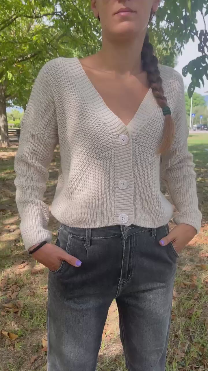 Un cardigan comodo e versatile, con bottoni per un look elegante. Perfetto per ogni occasione, dal lavoro al tempo libero.